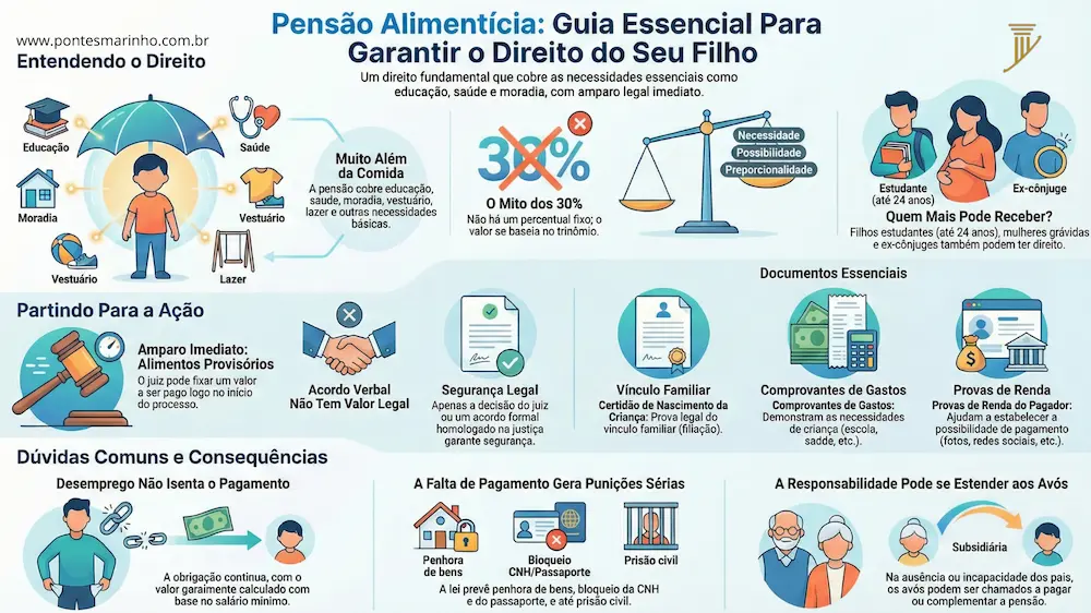 Muitas mães e pais hesitam porque acham que o processo é lento. A verdade? No momento em que o juiz recebe o pedido, ele já pode fixar os alimentos provisórios. Ou seja, você não espera o fim do processo para começar a receber. Por isso, ser assertivo agora é vital.